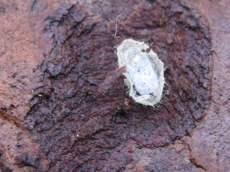 Su un tronco abbattuto e marcescente di Castanea sativa. Mai vista una cosa del genere: sembra una "culla" con all'interno un soggetto che non ho avuto il coraggio di distruggere per vederne l'aspetto.