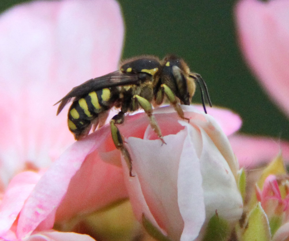 Le prime due foto sono di operaie di Bombus, con molta probabilita' B. pascuorum. Gli altri invece sono sempre delle api, ma della famiglia Megachilidae, genere Anthidium spp. (quelli piu' grossi in genere appartengono alle specie A. florentinum ed A. manicatum).