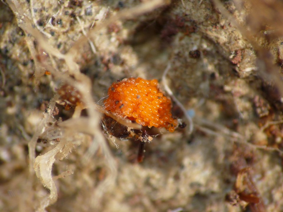 Sotto le pietre si trovano spesso questi mucchietti di palline del diametro di 0,5mm massimo.