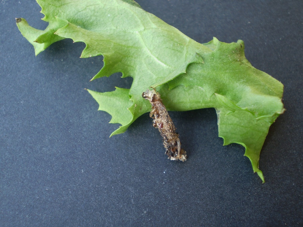 It's hard to determine from this photo. Bag has few features of Dahlica triquetrella, or maybe young Taleporia. I'm not sure but it seems that head of larva is exposed through rear opening of the bag.