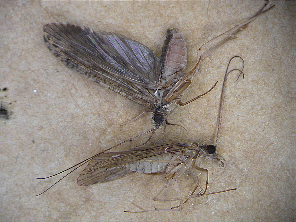 Così a prima vista sembrerebbero Tricotteri. Quel che mi lascia perplesso è che non ci sono stagni, pozze d'acqua o ruscelli in un raggio di diversi km da casa mia dove li ho presi attirati dalla solita luce nera sul terrazzo. Quindi dove potrebbero essersi sviluppate le larve?