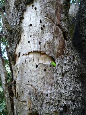 ho trovato alberi simili nella maremma toscana, si trattava di Prinobius (i fori grandi). Questi alberi hanno un enorme valore biologico, è un leccio bellissimo.