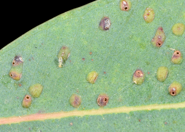 un secondo Homoptera (credo), anche questo su foglie di eucaliptus. Non azzardo neanche la superfamiglia :oops: