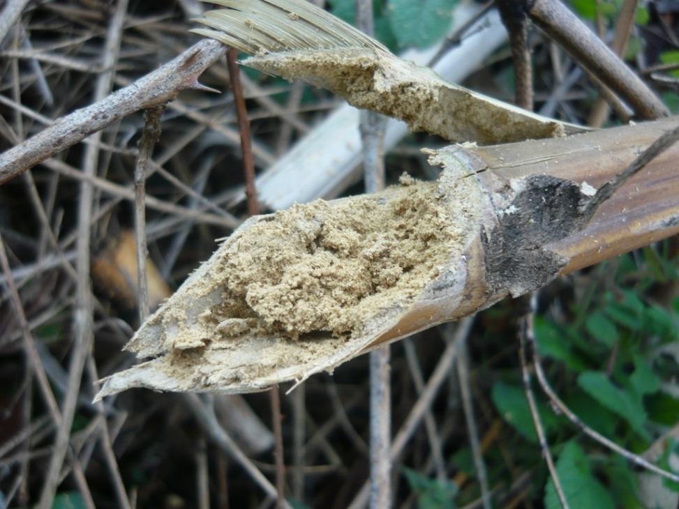 Io in casi come questi in cui non so a cosa appartiente il nido opero nel seguente modo: faccio un taglio longitudinale lungo la canna finchè non arrivo al materiale di costruzione del nido(erba, fango, legnetti...) e comincio ad allargare a mano finché la canna non comincia a rompersi seguendo la linea del taglio e sufficientemente da permettere di vedere l'interno. Una volta aperto faccio una foto per documentare la forma del nido e poi richiudo fissando le due metà con un po' di nastro adesivo. Con questo metodo ho ottenuto un paio di Ancistrocerus e qualche Sfecide piccolissimo, invece con le Isodontia non sono riuscito a far sfarfallare gli adulti. Ecco alcuni esempi