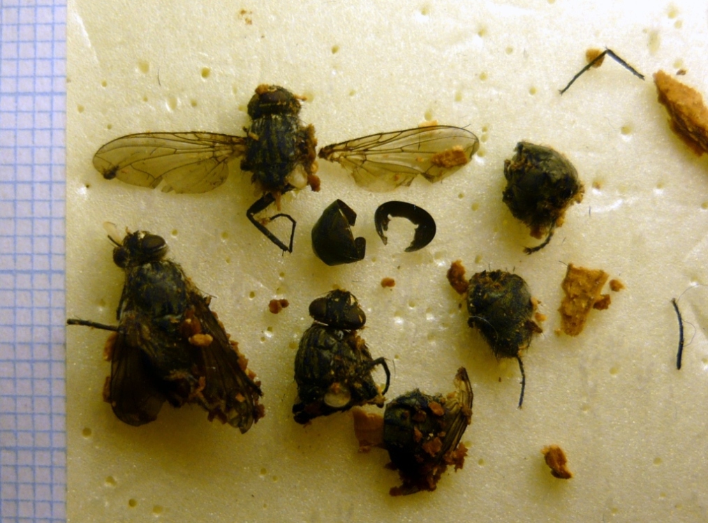 Buprestis? magari, mai viste quì Quello che rimane di quelli che sembrerebbero ben quattro mosconi appiccicati e bagnaticci tutti morti stipati in un sol buco