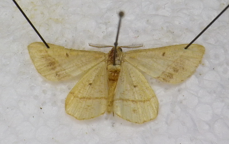 Per quanto riguarda la foto dell'adulto è tutt'altro. La famiglia è Geometridae e direi maschio di Isturgia arenacearia ([Denis & Schiffermüller], 1775)