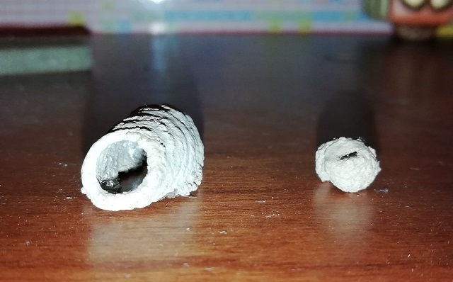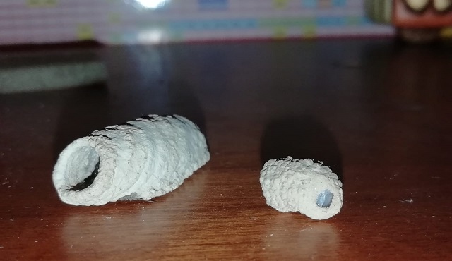 Di imenotteri nemmeno l'ombra, ma in diversi buchi ho trovato queste piccole celle cilindriche (8-9 mm in lunghezza, 4 mm circa in diametro). Dopo una veloce ricerca ho concluso che somigliano a quelle costruite da alcuni pompilidi, qualcuno può confermare o correggermi? :)