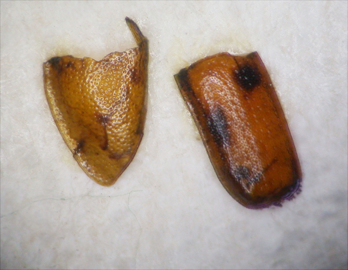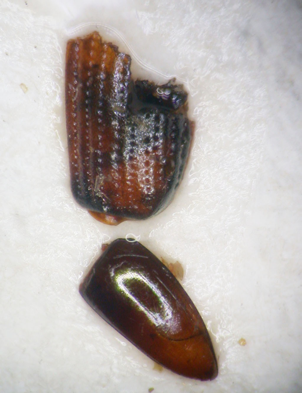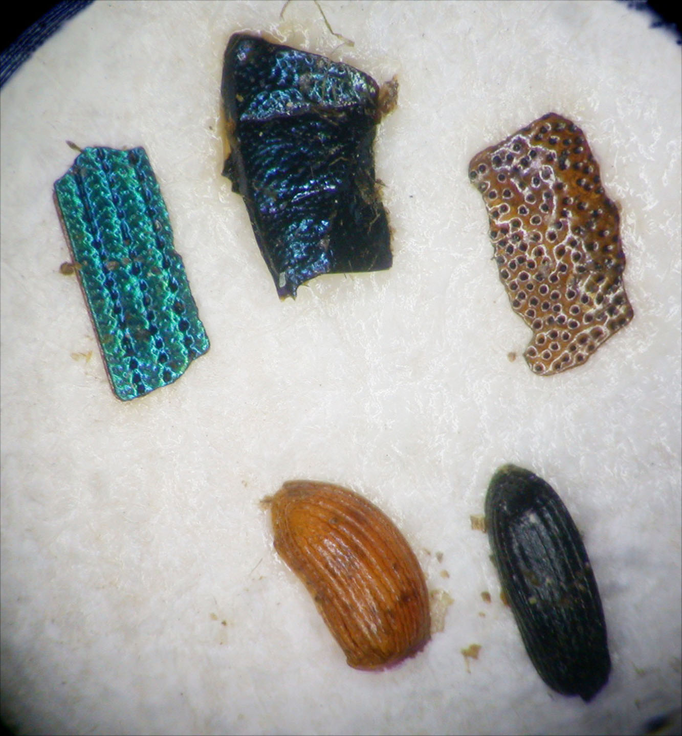 L'ultimo in fondo potrebbe essere un'elitra di Phalacridae.
