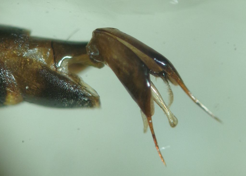 Esatto, le femmine delle due specie si riconoscono agevolmente dal numero di fasce gialle e dalla forma del clipeo, ma a quanto pare i maschi non hanno caratteri utili. Ho avuto la fortuna di "allevare" dei nidi di entrambe le specie, ottenendo quindi maschi determinati con certezza, prima o poi proverò a confrontarli per vedere se riesco a individuare qualcosa di utile. |