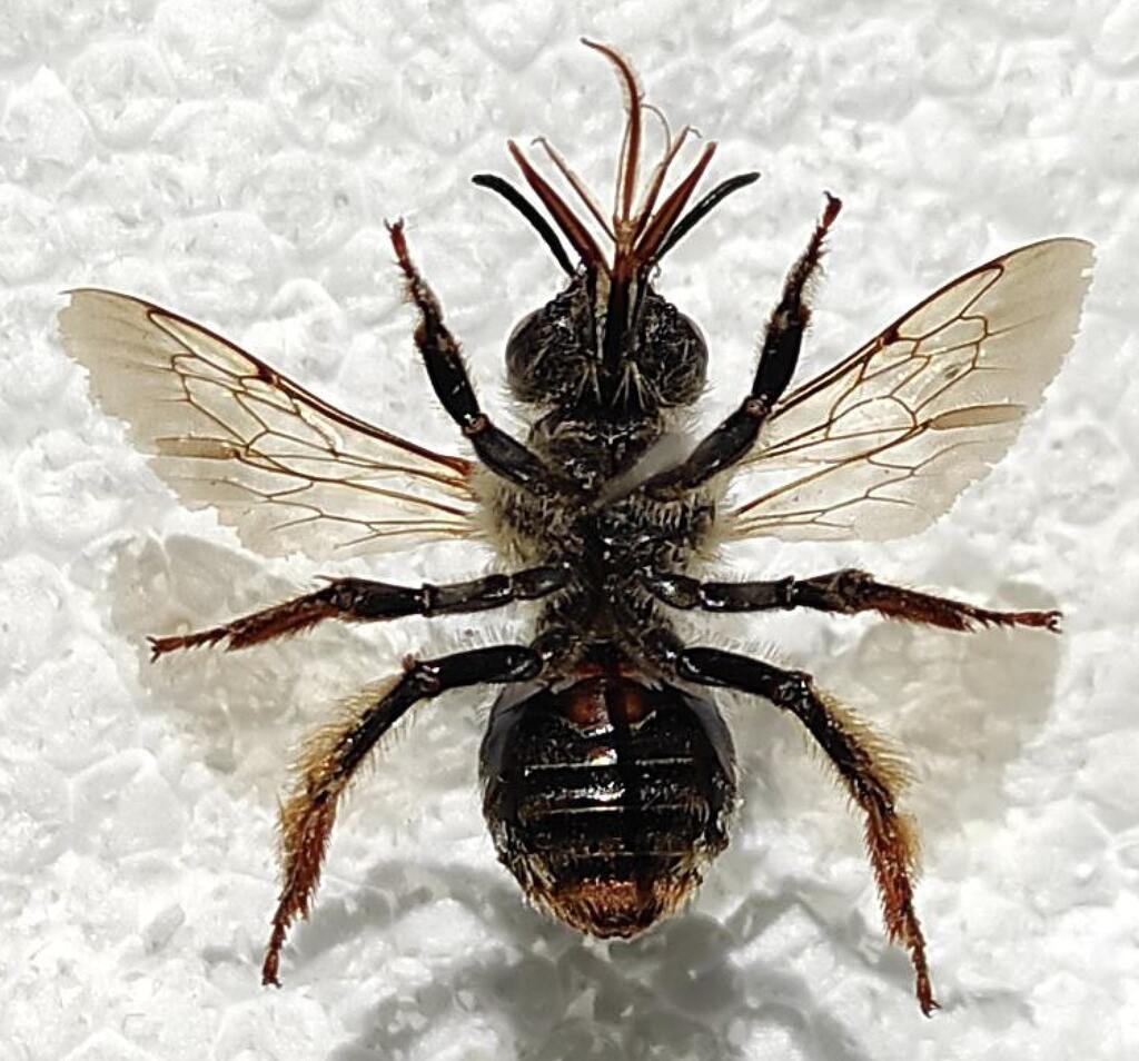Il basitarso posteriore in visione laterale appare alquanto rettilineo, cosa che farebbe escludere Eucera longicornis (Linnaeus, 1758).