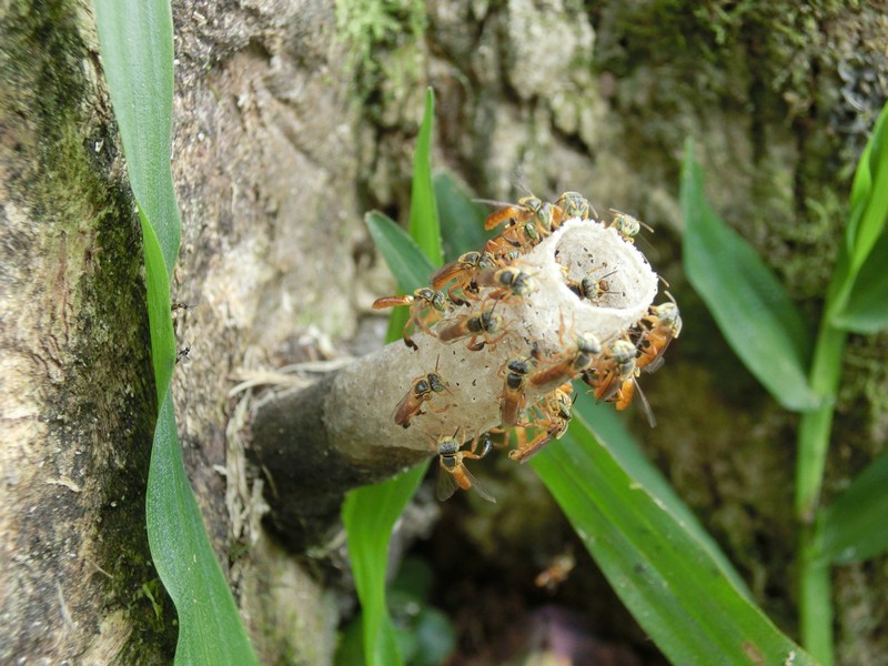 Infatti sono degli interessantissimi Apidi della tribù Meliponini, noti comunemente come api senza pungiglione (che in realtà hanno, ma talmente piccolo da non poter essere usato per la difesa).
