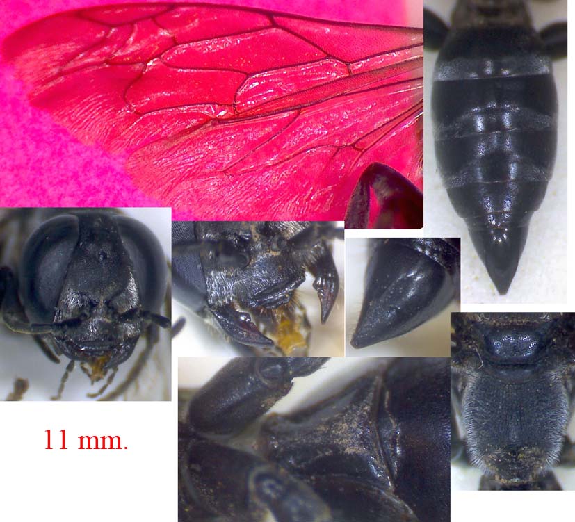 Ciao Pietro, i Tachysphex sono generalmente di difficile identificazione e quelli tutti neri lo sono in modo particolare. Io ho molte difficoltà anche con gli esemplari sotto il microscopio e non sono assolutamente in grado (credo nessuno so sia) di identificarli da una foto. Un carattere importante è la scultura degli sterniti addominali, abbastanza diversa nelle specie da te citate (anche la forma della fossetta sul vertice e la struttura dei pettini dei tarsi). In più, T. mediterraneus si distingue abbastanza bene dagli altri tre per una pelosità lunga e ondulata e per un dente sulla cresta superiore interna delle coxe posteriori (che negli altri manca). Alla prossima Maurizio |