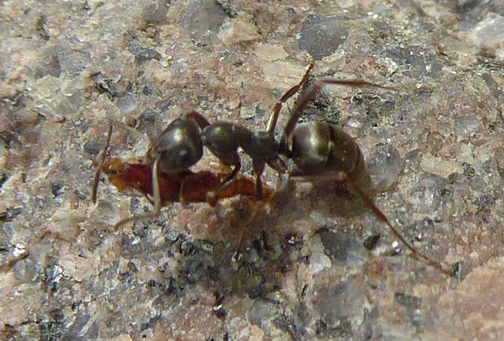 Non ho esperienze dirette con Formica ma, ho notato, che le Lasius tendono a portare dentro il nido qualsiasi cosa che si trovano davanti (anche zanzare intere), a patto che sia trasportabile.