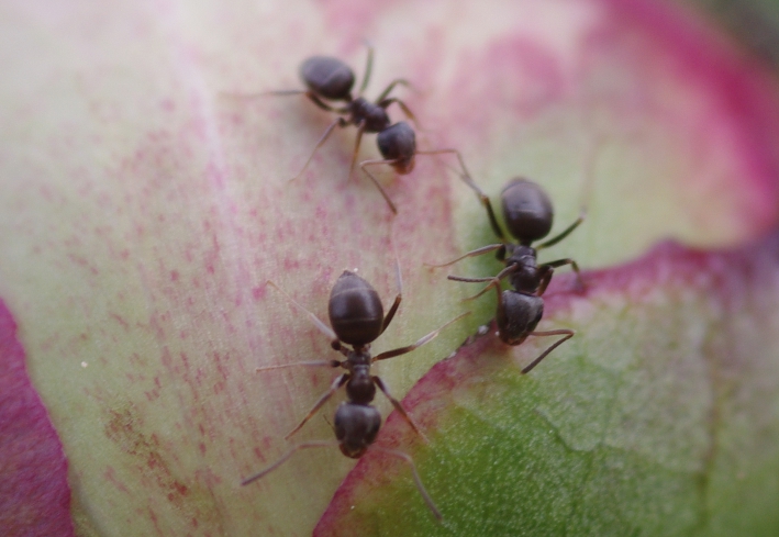Ma devo dire che non c'erano gli afidi sulla peonia. Ho cercato dapertutto e osservato da vicino per un bel po di tempo (anche l'anno scorso). Sembrava che le formiche rosichiavano sulle borde dei sepali. Forse cercavano degli zuccheri?
