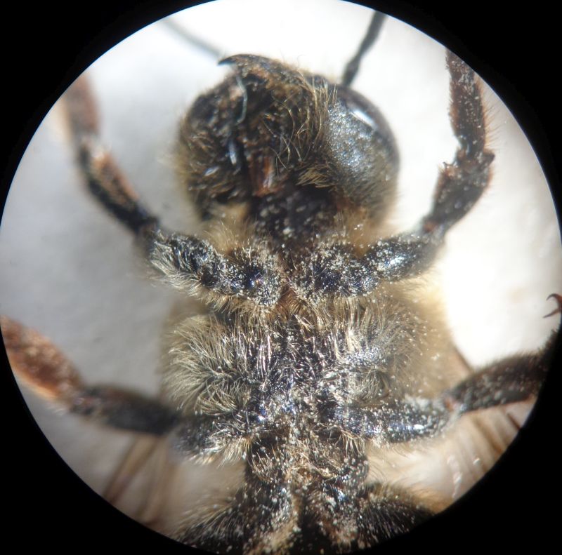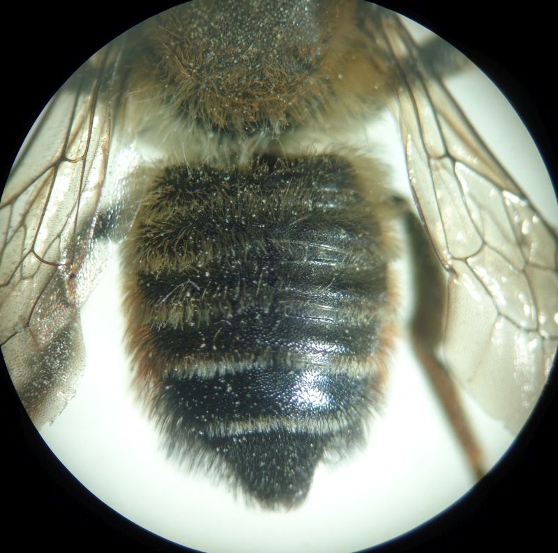Se invece la mandibola è normalmente dentata, la scopa potrebbe essere compatibile con M. alpicola: rossa tranne negli ultimi due segmento dove è nera.