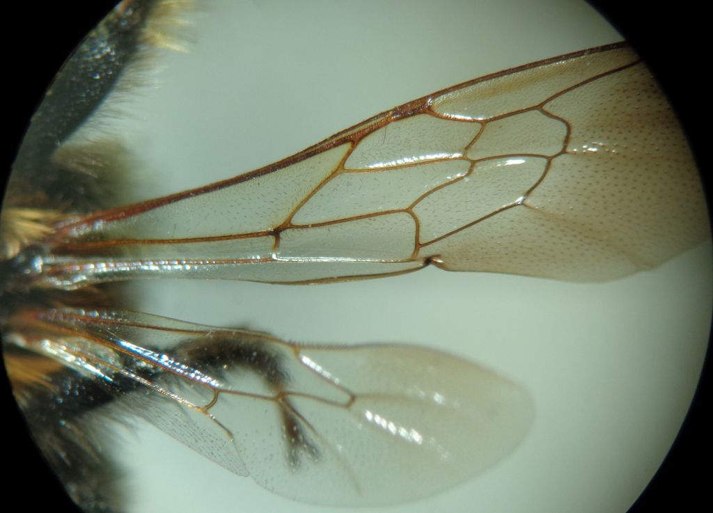 maschio, mm 15; sembra di Chalicodoma ma nessuna specie pare combaciare, anche se somiglia a sicula; forse è altro genere? Prima di estrarre provo con le sole foto. Mesotibia con spina acuta apicale e mesobasitarso con frangia di lunghi peli nero-bruni.