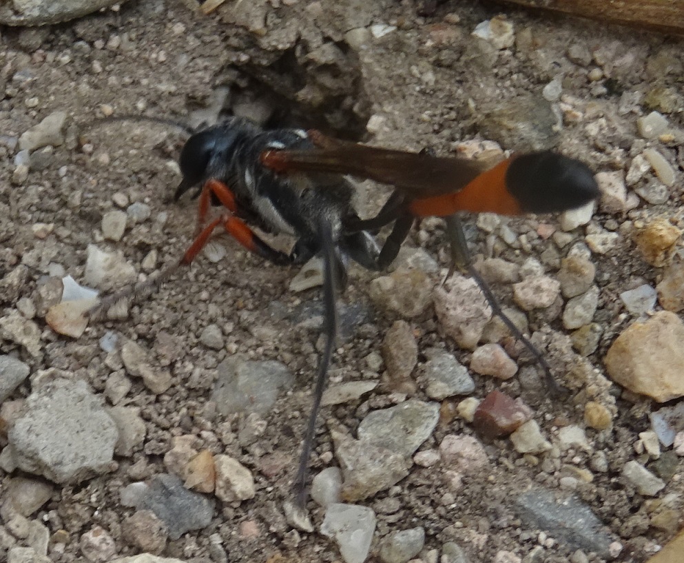 Salve, mi sembrerebbe di questa famiglia, forse Ammophila? Entrava ed usciva dal buco. Piuttosto lunga, credo 15-20mm. Grazie!