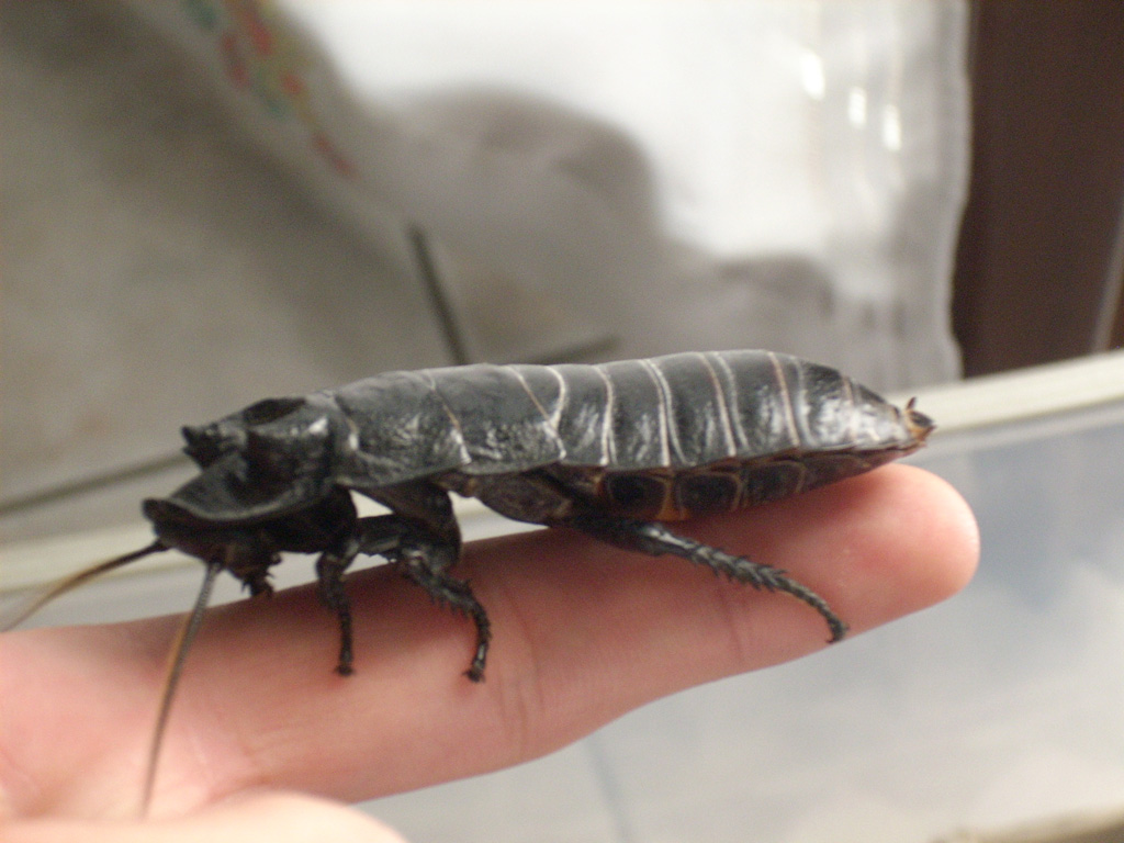 Grossa blatta del Madagascar che mi sono fatto regalare per natale 2009. Avevo iniziato con 10 adulti e ora mi ritrovo con 8 adulti e circa 20 neanidi. Come mezzo di difesa utilizzano...il soffio! Infatti queste blatte se disturbate emettono aria dagli spiracoli dando luogo a dei soffi. è una blatta molto interessante da allevare in quanto i maschi combattono usando le escrescenze a forma di corna presenti sul pronoto. I combattimenti iniziano con un maschio che "minaccia" soffiando, mettendosi ritto sulle zampe e alzando l'addome verso l'alto; continuano poi prendendosi a cornate per tutta la notte(le prime notti non sono riuscito a dormire :lol: ). Il maschio più forte poi ha diritto a un suo territorio e a un harem di femmine, gli altri maschi possono mettersi fuori dal territorio o stare all'interno di quello del maschio dominante comportandosi in modo sottomesso.