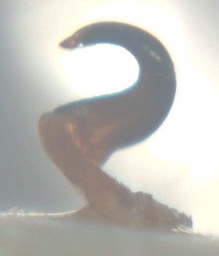 Visto che recentemente è morto il maschio più grande, ultimo rimasto dello starter iniziale, ho approfittato per estrarlo. Curiosissima la forma e il rapporto dimensioni animale-dimensioni edeago poichè l'esemplare è lungo più di 80mm, mentre l'edeago è lungo solo 1-2mm.