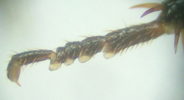 Inserisco una (brutta, come al solito: non so far di meglio ... :cry: ) fotografia dei protarsi; sono visibili le euplantule, il cui numero è un importante carattere per separare il gruppo decipiens dal gruppo maroccana