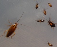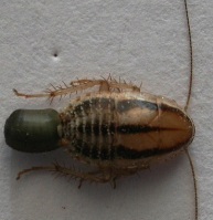 Appendice 3Purtroppo, come scritto in più occasioni, con la fotografia ci sono delle ... ehm ... incomprensioni Ritengo utile inserire un confronto tra gli adulti delle due Periplaneta in chiave ( P. americana e P. australasiae) più P. fuliginosa, infestante in notevole espansione che potremmo trovarci a dover identificare in un futuro non troppo remoto ( per saperne di più). Notate i cerci di P. fuliginosa, più tozzi di quelli delle altre due, che li hanno appuntiti. Tutti gli animali provengono dall'allevamento di Milano, curato da Franco Casini (EffeCi 61) Questo l'ordine (nella fila superiore le femmine, nella fila inferiore i maschi): P. americana (Linnaeus, 1758), P.australasiae (Fabricius, 1775) , P. fuliginosa Serville, 1839