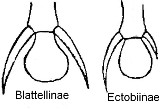 *Non ho dati certi sulla reale presenza di P. australasiae; il suo inserimento in chiave è soprattutto dovuto all'intenzione di fornire elementi per poterla agevolmente discriminare da P. americana, di cui è più piccola, affusolata e con colorazione più brillante.Chiave dei generi, dei sottogeneri e di alcune specie italiane della Famiglia Blattellidae
