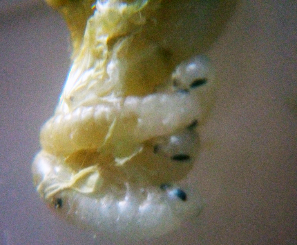 La deformazione di quel'altra discussione è un po' diversa, ma penso abbia la stessa origine. In pratica la metà di un lato di un urite non è unita con l'altra metà, ma con la metà complementare dell'urite successivo e le due metà rimanenti restano incomplete (in quella su Entoforum). Nella tua la metà destra di un urite si fonde con l'urite precedente, la metà sinistra con quello successivo, formando due strutture biforcate. Credo proprio che si tratti di anomalie che si verificano durante la muta, quando il nuovo esoscheletro non è ancora completamente formato, non so se per cause traumatiche, ambientali o di altro genere. |