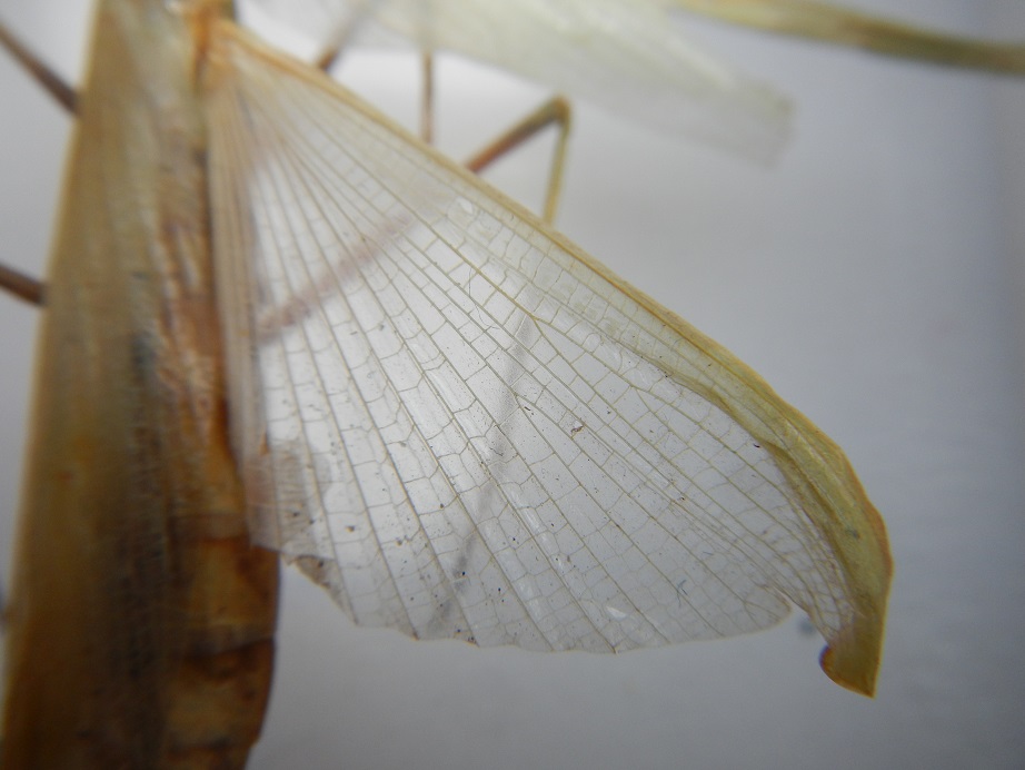 Simile a Mantis indica, ma con differente distribuzione e conformazione dei genitali maschili. Ali molto sviluppate, non vengono coperte dalle tegmine.