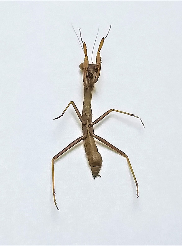 Nel momento in cui l'ho raccolta pensavo fosse una Ameles, ma proporzioni del capo, assenza di ali, forma del protorace e delle zampe anteriori mi fanno pensare piuttosto a una neanide di Mantis religiosa. Chiedo conferma perché mi resta il dubbio che non sia invece una ninfa di Iris oratoria. Grazie per l'aiuto.
