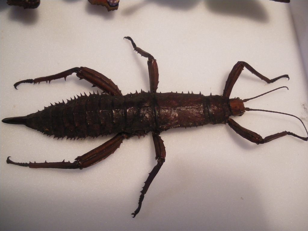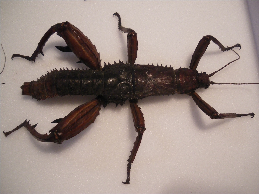 Purtroppo non posso modificare il messaggio  Ho comprato la coppia ad Entomodena e l'ho allevata. Sicuramente anche ad Entomodena saranno stati presi da un altro allevamento... Fatto sta che comunque questa specie vive in Papua Nuova Guinea, da cui saràstato prelevato lo stock iniziale. Ho messo i dati (anno e luogo) dove li ho allevati, ovvero a casa mia. Riguardo l'allevamento: Teca 30 cm di larg. 50 di lung. e 30 di altezza. Come pianta nutrice davo l'Edera ( Hedera helix) e ho dato a loro disposizione una corteccia dove andare a ripararsi durante il giorno, visto che sono notturni. Una nebulizzata al giorno. Per la deposizione ho messo nella teca una vaschetta di sabbia (ma si può usare anche la torba), visto che le femmine posseggono l'ovopositore. Il dimorfismo è molto marcato: il maschio possiede i femori molto più massicci e dotati di grandi spine (la spina principale veniva persino usata dagli aborigeni come amo da pesca), l'addome più esile ed è privo di ovopositore. La femmina ha zampe meno possenti, addome più grosso e possiede l'ovopositore. Ditemi se manca qualche informazione