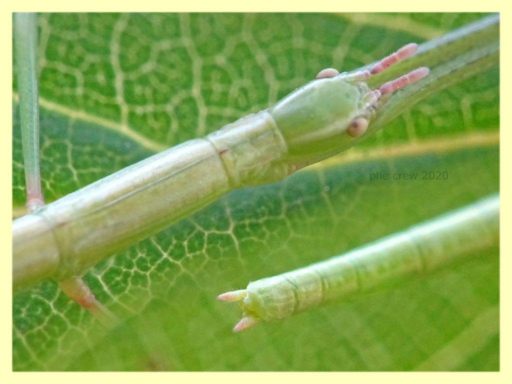 ...a parte il saper riconoscere un Clonopsis ed un Bacillus da queste brutte foto (che non volevo nemmeno postare)...ma non trovate che i soggetti siano diversi nella foto in confronto ? :? ...erano a pochi rami di distanza...potrebbero essere due specie diverse o della stessa specie ma un giovane ed un adulto ? :? ... aspetto delucidazioni da un occhio più esperto.