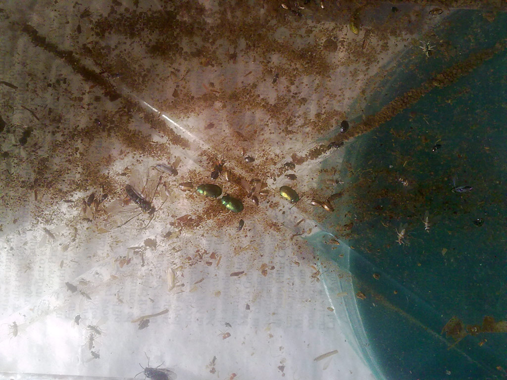 Si impara sempre qualcosa di nuovo! Non avevo mai pensato di portarmi a casa il risultato dello sfalcio! Almeno così si evita, mentre si sta chini con l'aspiratore sul retino, di trovarsi pieni di bestioline di tutti i tipi che ti si arrampicano addosso e si infilano sotto la camicia, senza contare tutti quelli che scappano in volo. Ci proverò questa stessa primavera. Una domanda sola: il contenitore laterale è collegato con un tubo orizzontale al contenitore principale, presumo. Perchè lo hai messo così in basso? C'è un motivo particolare? Non funzionerebbe anche meglio se verniciassi il contenitore principale di nero, in modo che gli insetti a fototropismo positivo si dirigano più facilmente verso il contenitore laterale? Ho detto una sola domanda, ma me ne è venuta in mente un'altra: come eviti che i vari frammenti vegetali finiscano nella bacinella inferiore assieme agli insetti? Ci metti in mezzo una rete? Per chi chiedeva dove fosse la copertura delle mie bottiglie: all'inizio l'avevo messa, poi ho visto che cambiava ben poco, perchè il detrito che ci metto lo passo prima ad un controllo rapido a vista su bacinella bianca. rapido ma sufficiente per prendere tutte le specie più attive, che sono poi anche quelle che potrebbero volare via, che muovendosi nella bacinella si vedono subito. Quindi la copertura diventa poco utile, specialmente se le piazzo al sole, nel qual caso le specie tipiche di questi ambienti cercano subito di nascondersi scendendo più in basso.