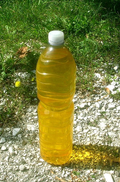 Nelle nostre dispense ci sono spesso dei coloranti per uso alimentare, in questo caso volendo colorare di giallo ho subito pensato allo zafferano. Sciogliendone 1 bustina in una bottiglia di acqua da 1,5 lt si ottiene un bel giallo brillante