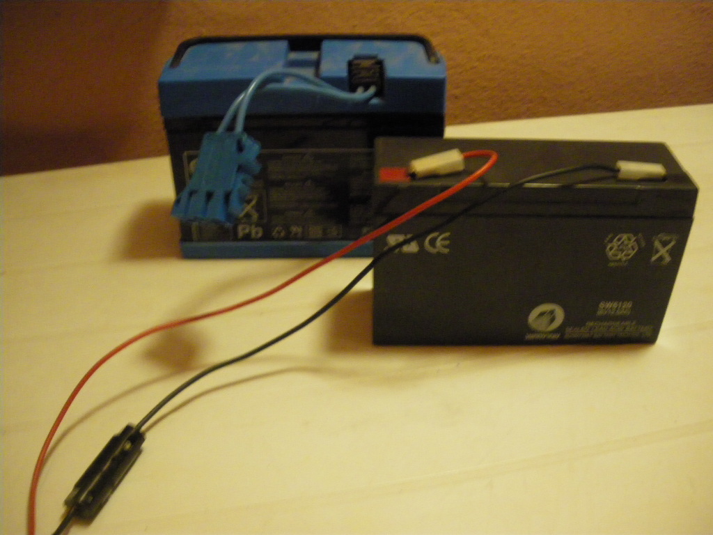 Finalmente ho cercato una batteria per auto, ma ne ho trovata una che non so se sia carica o no. Intanto, visto che volevo provare a farlo sul monte Ventasso, ho trovato due batterie per i miei vecchi giochi elettrici, più leggere (più precisamente una piccola jeep Peg-Peregò e una piccola moto :lol: ). Una è da 12 volt (stessi di quella della batteria dell'auto, solo che è molto più leggera :shock: ) e l'altra 6 volt. Potrebbe andare una delle due per usare una lampadina di più di 200 volt, usando un inverter che trasforma credo da 12 a 150 watt??? Allego le foto, scusate ma le ho fatte in fretta alla luce del lampioncino di casa: