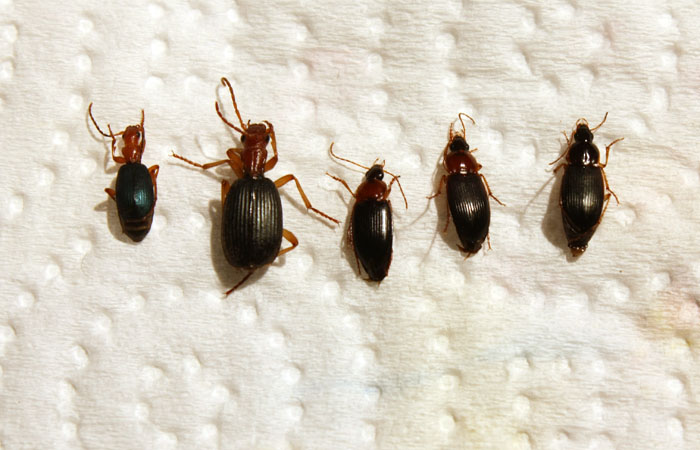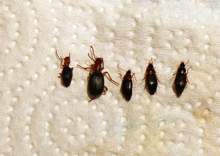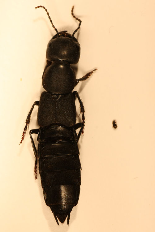 I due estremi a confronto! Sulla sinistra un Staphylinidae (penso un Ocypus) di ben 30 mm senza antenne!! E sulla destra un altro coleottero non ben identificato che con il suo millimetro scarso si aggiudica lo scettro di nano-insetto!!! :mrgreen: :mrgreen: