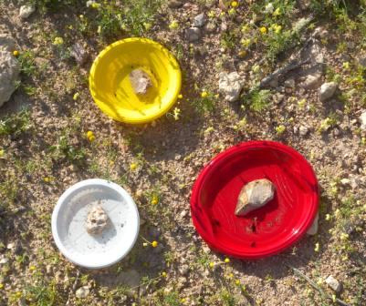 non mi pare di aver visto sul Forum alcun consiglio sull'utilizzo dei piattini colorati riempiti di acqua appena saponata, che utilizzo con successo sopratutto in zone semidesertiche in assenza di fiori per Glaphyridae e Meloidi (piattini rossi) e Buprestidi (piattini gialli) e Mutillidi maschi (piattini bianchi) (a parte ditteri e imenotteri). Mi raccomando di mettere un sasso per appesantire il piattino e solo una goccia di sapone liquido per 2 litri di acqua. Per asciugarli perfettamente metteteli in segatura secca. Li ho utilizzati anche per studiare la visione dei colori nei glafiridi: i colori rosso, bianco e giallo attraggono in modo differente le diverse specie di glafiridi.I risultati si vedono dalle foto.