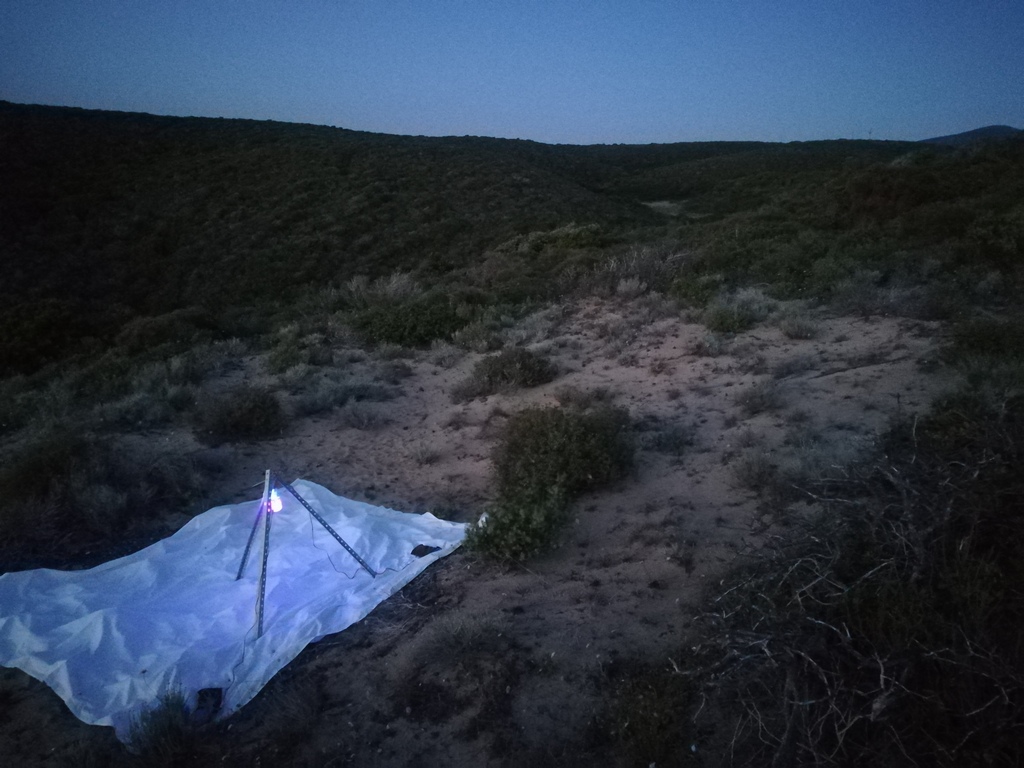 Ormai sono circa 5 anni che raccolgo abbastanza spesso alla lampada, dai mesi di maggio ad ottobre e in media una volta alla settimana, specialmente negli ultimi anni. Dopo tutto questo tempo ho raggiunto un certo assestamento come tipologia e impiego di ‘marchingegni’ luminosi. Assestamento che, ovviamente per le mie esigenze e a mio modo di vedere, è l’esito di un buon compromesso tra potere catturante, comodità di trasporto, durata lungo l’arco della notte. Detto questo cercherò di descrivere brevemente come opero, nell’ipotesi che possa risultare utile a qualche utente. In ogni uscita posiziono sempre almeno tre ‘lampade’: a) 2 a led uv abbinati a due bacinelle. b) 1 con lampada a fluorescenza uv abbinato a un lenzuolo + treppiede/spago/mollette da bucato. Quella a led uv è montata come da foto seguente: batteria, dissipatore, led e driver fanno pezzo unico grazie ad una staffa ad L che ne permette un trasporto e posizionamento pratico. I pezzi sono tenuti assieme grazie a semplici fascette che all’occorrenza possono essere rimosse. Il led è un uv da 10W abbinato a una batteria 12V da 6800mAh e grossomodo assicura 8 ore di funzionamento: Le due fonti luminose a led sono quelle che chiamo “non sorvegliate”: vuol dire che le posiziono in due punti diversi e che le lascio lavorare senza controllarle, se non ogni tanto se e quando posso durante la notte. Al di sotto di ognuna di essere posiziono infatti, interrata o seminterrata, una bacinella piatta e ampia, con due dita di acqua saponata. Sui suoli sciolti è facile interrarla ma su quelli duri e compatti è una faticaccia: meglio quindi interrarla appena e creare rampe di terriccio sui quattro lati (così come ho fatto in Marocco). Se non si hanno bacinelle si possono creare dei contenitori di fortuna, come nel caso seguente: Quando non posso attendere tutta la notte uso interruttori crepuscolari da 12V che accendono automaticamente il led al tramonto. In questo modo posso sistemare tutto anche in pieno pomeriggio in punti lontani da occhi indiscreti e ritornare la mattina dopo: E’ sorprendente constatare come anche in una medesima località sia sufficiente distanziare le fonti luminose anche solo di un centinaio di metri per ottenere risultati a volte completamente differenti. Più volte ho effettuato catture interessanti su una sola delle tre fonti utilizzate, nonostante le avessi piazzate a modesta distanza tra loro. Come ho giù detto la terza fonte luminosa che utilizzo è una lampada 12V uv a fluorescenza da 20W alimentata da una batteria al litio da 20000mAh. Questo accoppiamento consente un’autonomia di oltre 10 ore: insomma la lampada lavora tutta la notte prima che la batteria si scarichi. La lampadina si collega direttamente alla batteria senza nient’altro ed è quindi una soluzione comoda e veloce: Questa è la lampada “sorvegliata” e per questo abbino al solito lenzuolo bianco che monto in verticale con un robusto spago. Se mi trovo in zone cespugliose lo monto in orizzontale stendendolo al suolo e tenendo la lampada sollevata grazie a un treppiede. Poi ovviamente se decido di andarmene a dormire e di ricontrollare tutto all’alba tolgo il lenzuolo e al di sotto della lampada interro la solita bacinella con acqua: Un abbinamento che dà buoni risultati è accoppiare le lampade fluorescenti a luce bianca e a luce uv (sempre da 20W e da 12V), come in foto seguente. Per alimentarle uso due batterie al litio da 20000mAh anche se grazie a degli interruttori posso spegnerle e accenderle a piacimento e in maniera indipendente l’una dall’altra. Questo perché sia alcuni coleotteri che lepidotteri sono sì attratti dall’uv ma si posano piuttosto lontano: se si spegne l’uv e si accende la luce bianca arrivano quasi immediatamente: Qualche considerazione finale: a) mi porto sempre dietro un piccolo set di cacciaviti, nastro isolante, filo elettrico, forbici e alcuni ricambi: tra questi una batteria, una lampadina uv, un led, un driver. Non è il caso di fare magari 100 km per poi trovarti azzoppato da un qualcosa non funzionante. Prima di uscire controllo una lista con tutto quello che serve e spunto via via le varie voci in modo da non dimenticare nulla. b) sono molte più le volte in cui non ho preso un fico secco che quelle in cui ho rimediato qualcosa di buono. Molto spesso l’intera notte si gioca su uno o due reperti interessanti che possono arrivare anche tardissimo o alle prime luci dell'alba. Per questa ragione è consigliabile lasciare lavorare le trappole tutta la notte. Ovviamente non mancano le notti 'speciali', quelle in cui arriva di tutto e di più sin dal crepuscolo.