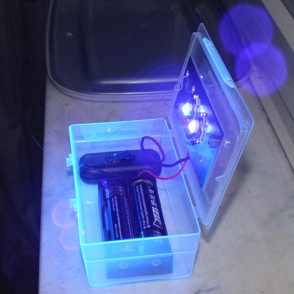 Oggi mi sono arrivati i led UV e il portabatterie (da Cina e Hong Kong). Devono ancora arrivare le due batterie al litio da 3,7 Volt, ma nel frattempo ho utilizzato due che uso con le torce a led che uso per la caccia notturna itinerante.