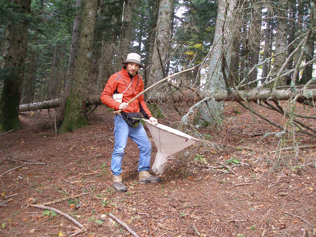 Qualcuno si aggira per la foresta alla ricerca dei rami giusti da ombrellare. Siamo sull'Appennino romagnolo due giorni fa, in piena foresta di Abies alba. Il target è Pogonocherus ovatus (Coleoptera Cerambycidae)