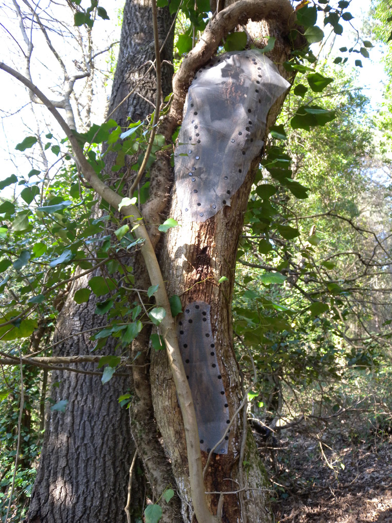 Qualche tempo fa, insieme all'amico Stefano Nappini, avevamo visto una pianta con un paio di cavità cariate, con segni di attività di xilofagi ( rosura e qualche foro di sfarfallamento ).La pianta, che al momento non siamo riusciti a classificare, non è un'essenza tipica della macchia mediterranea e quindi ci aveva in qualche modo interessato.Siamo tornati sul posto con l'intento di realizzare qualcosa che ci permettesse di scoprire chi era l'autore degli attacchi ( sperando che si tratti di una specie interessante ).Questa è la soluzione che abbiamo scelto.Eccoci al lavoro: