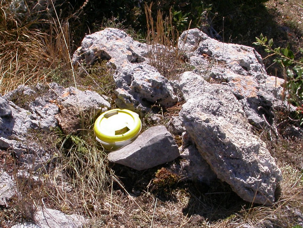 Visto che spesso ho accennato alle mie semplici trappole per necrofagi, ma non ho mai inviato una foto, approfitto dell'uscita di oggi per illustrare meglio il sistema. Il 13 agosto avevo messo una di queste trappole costituite da due recipienti uno dentro l'altro con esca (in questo caso per necrofagi, ma si può fare anche per coprofagi o altro), sulle montagne vicino a Cervara diRoma, a un'oretta di macchina da Roma. Oggi, visto che ieri ha ripreso servizio la badante di mia madre dopo le ferie, sono andato un paio d'ora a ritirare la trappola e vedere se c'era ancora qualcosa in giro. Premetto che ho stranamente trovato ancora 4 specie di Buprestidi (tre di ANthaxia e Buprestis novemmaculata) ancora in giro. Non mi meraviglia il Buprestis, ma le ANthaxia ancora fuori è veramente strano, soprattutto considerando l'agosto caldissimo e secco di quest'anno. C'era anche altra roba, ma soprattutto Imenotteri. Comunque, arrivo al punto dove avevo messo la trappola, a circa 1000 m di quota, in posizione ventilata e esposta al sole. Il pietrone che si vede sulla destra è quello di copertura. Quando è in posizione, dall'esterno non si vede nulla. Le pietre intorno alla trappola servono per permettere agli insetti di arrivarci camminando, per sostegno della copertura e anche a contribuire a non farla vedere (tra le rocce, è meglio non provare neanche a scavare!) Già prima di aprirla, dalle finestre sul coperchio si vede che è mediamente carica Togliendo il coperchio si vede la struttura interna, col bicchierino di yogurt contenente ciò che prima era una fettina di arista di maiale andata a male e conservata in freezer da questo inverno. Si vede un buon numero di Nicrophorus, un po' di Necrodes, di cui molti immaturi, qualche Creophilus maxillosus, un po' di Dermestidae e Histeridae (relativamente pochi) e i soliti ditteri di vari tipi. Notare che il bicchierino interno presenta delle tacche intagliate sul bordo superiore per permettere il passaggio dell'aria, mentre le parti sporgenti del bordo restano premute contro il coperchio, per non far muovere il bicchierino. A questo punto si può procedere in due modi: 1 - se si ha fretta e ci si è porati appresso un grosso contenitore pieno per metà di alcool etilico al 90% (quello solito rosa denaturato per uso esterno), si butta tutto il contenuto lì dentro e si chiude bene. Poi si porta a casa e, dopo qualche giorno (meglio lasciar tutto il alcool per qualche tempo per ridurre la puzza e fermare la decomposizione), si può procedere al controllo e smistamento/preparazione del contenuto 2 - se si ha tempo e non si vuole portare tutta quella schifezza a casa, basta un barattolo con un po' del solito alcool (in questo caso uno di marmellata) dove trasferire ciò che ci interessa. Ed è così che ho fatto stavolta. Servono un paio di pinzette, con le quali si trasferiscono gli esemplari nel barattolo con l'alcool, magari dopo averli versati su una superficie orizzontale o filtrati con un passino Alla fine ciò che rimane è un barattolo con alcool non troppo sporco e gli insetti che interessano, che si possono lasciare così per un po' di giorni, poi trasferire in alcool non denaturato al 65-70% e preparare quando si vuole, anche dopo anni A volte ci si trovano anche cose inaspettate. Per esempio, in questa trappola ci ho trovato anche un paio di Sysyphus schaefferi (evidentemente c'era penuria di sterco fresco), e perfino un Chrysididae! (forse attirato dal coperchio giallo, anche se coperto dalle pietre?) Per concludere, prima di raccogliere gli insetti va tolto il bicchierino centrale, con quella specie di immonda poltiglia marrone che prima era una fettina di carne (se si usa il pesce è pure peggio). Sarebbe meglio chiuderlo in un sacchetto e portarselo via, per poi buttarlo in un cassonetto della spazzatura, ma se proprio non potete e dovete lasciarlo sul posto, assicuratevi prima di schiacciare il bicchierino, o almeno di lasciarlo rivoltato con l'imboccatura in basso e in modo che non possa girarsi, altrimenti rischiate di ammazzare inutilmente un gran numero di altri insetti attirati dall'odore e incapaci di volare o non molto abili nel decollo. Un ultimo consiglio. Dopo aver ritirato la trappola, strofinatevi il naso con delle foglie di mentuccia, timo, rosmarino o qualsiasi altra erba aromatica della zona, perchè altrimenti vi sembrerà di sentire quella puzza per tutta la giornata!