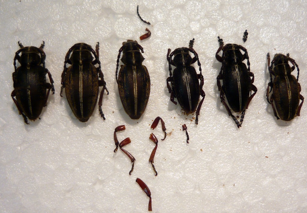 Le zampe staccate non buttarle via ma mettile in una bustina a parte. Possono essere molto utili per fare degli studi più accurati delle parti del corpo che sono spesso trascurate ma se si incollano ad una bestia che si pensa che possa essere il proprietario e invece non lo è si fa un bel paciugo che non serve a nulla. Pertanto io ti consiglierei di preparare i Dorcadion così come sono, e le zampe separatemente, se sei assolutamente certo che una zampa appartenga a una certa bestia però, ovviamente puoi incollargliela.