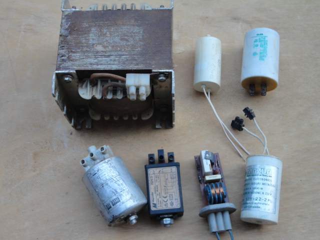 3) Nella terza foto vengono illustrati gli annessi delle lampade ad ioduri metallici da un reattore da 1000 wat ad accenditori , due o tre vie da 70 wat a 2000 wat con relativi condensatori di rifasamento tenzione, indispensabili per il funzionamento.