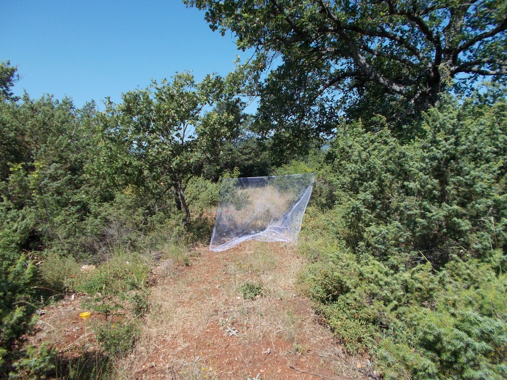 I risultati sono stati sconfortanti. Solo alcuni imenotteri sono rimasti nella rete. Ma bisogna considerare che l'ho tenuta in funzione solo un paio d'ore, che molto dipende dal punto e dalla direzione in cui la si monta, e che quando sono tornato a riprenderla, uno dei tiranti che reggevano gli angoli superiori dell'entrata si era rotto, e l'apertura era parzialmente chiusa (c'era vento ed avevo usato una cordina troppo sottile). Inoltre quel giorno non girava quasi nulla.