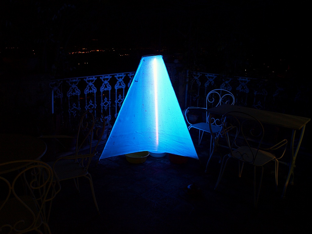 Ne ho approfittato per rispolverare un mio vecchio aggeggio che mi ero costruito per attirare gli insetti notturni, ma che raramente ho usato se non sul terrazzo di casa (perchè per usarlo in campagna avevo bisogno di un generatore, il cui peso non è trascurabile, e ancora non c'erano in commercio i comodissimi inverter che ci sono oggi).