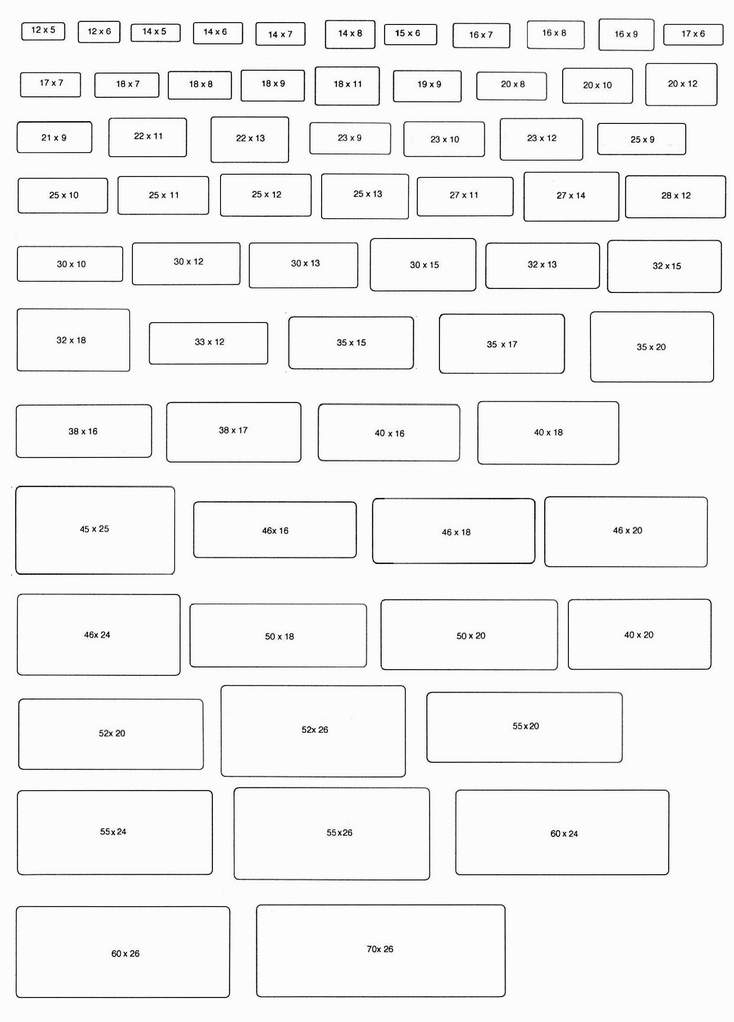 dal 38X16 in su, fino all' 80X35, per un totale di almeno 23 misure.