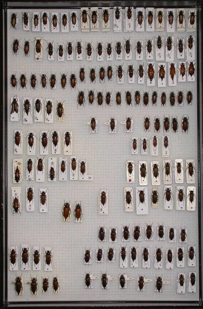 io tengo nella collezione specialistica più esemplari che posso, di località e date diverse (ad esempio per Antisphodrus reissi boldorii ho 2 scatole e mezza e di alcuni Trechini e Bathyscini tengo 3 - 4 specie per scatola). Per la collezione generale mi bastano anche due esemplari.