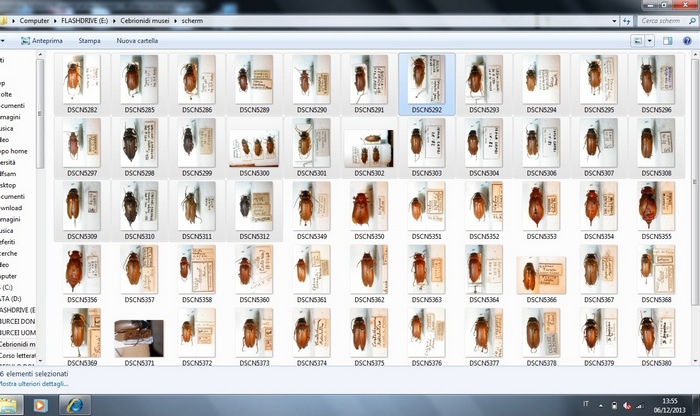 Ovviamente anche io ho fatto e faccio così per tutto il materiale non mio visionato e/o studiato. Ho cartelle con le foto e i dati di tutti i tipi dei gruppi che studio (che sono una parte di quelli che seguo, ovviamente), cartelle con foto di esemplari non di serie tipiche (normalmente una cartella per genere e per collezione, ma talora una cartella per genere e per Stato), e anche cartelle con foto di materiale della mia collezione che, per motivi di studio, di confronto o di pubblicazione ho fotografato. Il problema, almeno per me, sorge quando devo gestire tutto questo materiale iconografico, perchè sono molte migliaia di foto (non sono a casa e non posso dire esattamente quante, ma sono veramente molte).