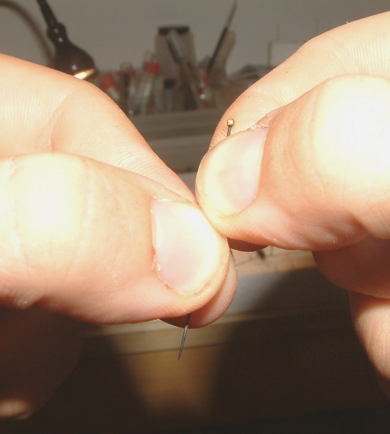 Prima si parlava come spillare insetti particolarmente coriacei: io utilizzo sempre e solo il n.2 e, con un po' di pratica, riesco a bucare un Morimus al primo colpo: basta tenere lo spillo con 4 dita (v. foto): oltre a dare più forza, si evita che lo spillo si pieghi perchè tenuto saldamente in posizione.