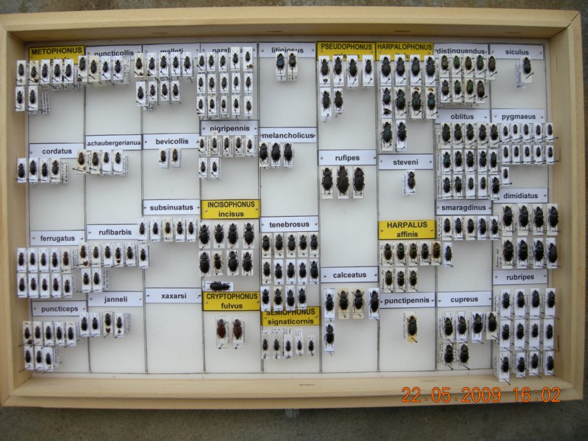 Anch'io mi sono trovata nella tua situazione, solo che non era la mia collezione! Son d'accordo con Daniele (a proposito ...saluti!) e ti do solo i suggerimenti che mi hanno dato diversi esperti. Se devi ordinare degli esemplari, per esempio di Carabidi, puoi o seguire l'ordine alfabetico di generi e specie oppure l'ordine evoluzionistico. Se segui la seconda strada puoi prendere come modello (io ho fatto così) la "Checklist della fauna d'Italia” anche se per la nomenclatura delle specie è meglio seguire la "Fauna europea" di internet. Ho visto che la disposizione degli esemplari nelle varie foto è in senso orizzontale. Nella collezione che curo, invece, sono disposti in senso verticale (se ti interessa ti posso spedire una foto). Un’altra cosa (secondo me geniale) che mi è stata suggerita a suo tempo è la numerazione delle scatole già ordinate (non di magazzino): le scatole segnale in decine: es. Carabidae 10-20-30 ecc., così che quando devi inserire altri esemplari che secondo il tuo ordinamento stanno ad es. tra la scatola n°20 e n°30, usa una nuova scatola con il n° 21. in questo modo riduci la possibilità di fare dei vuoti all’interno di ogni singola scatola. In bocca al lupo